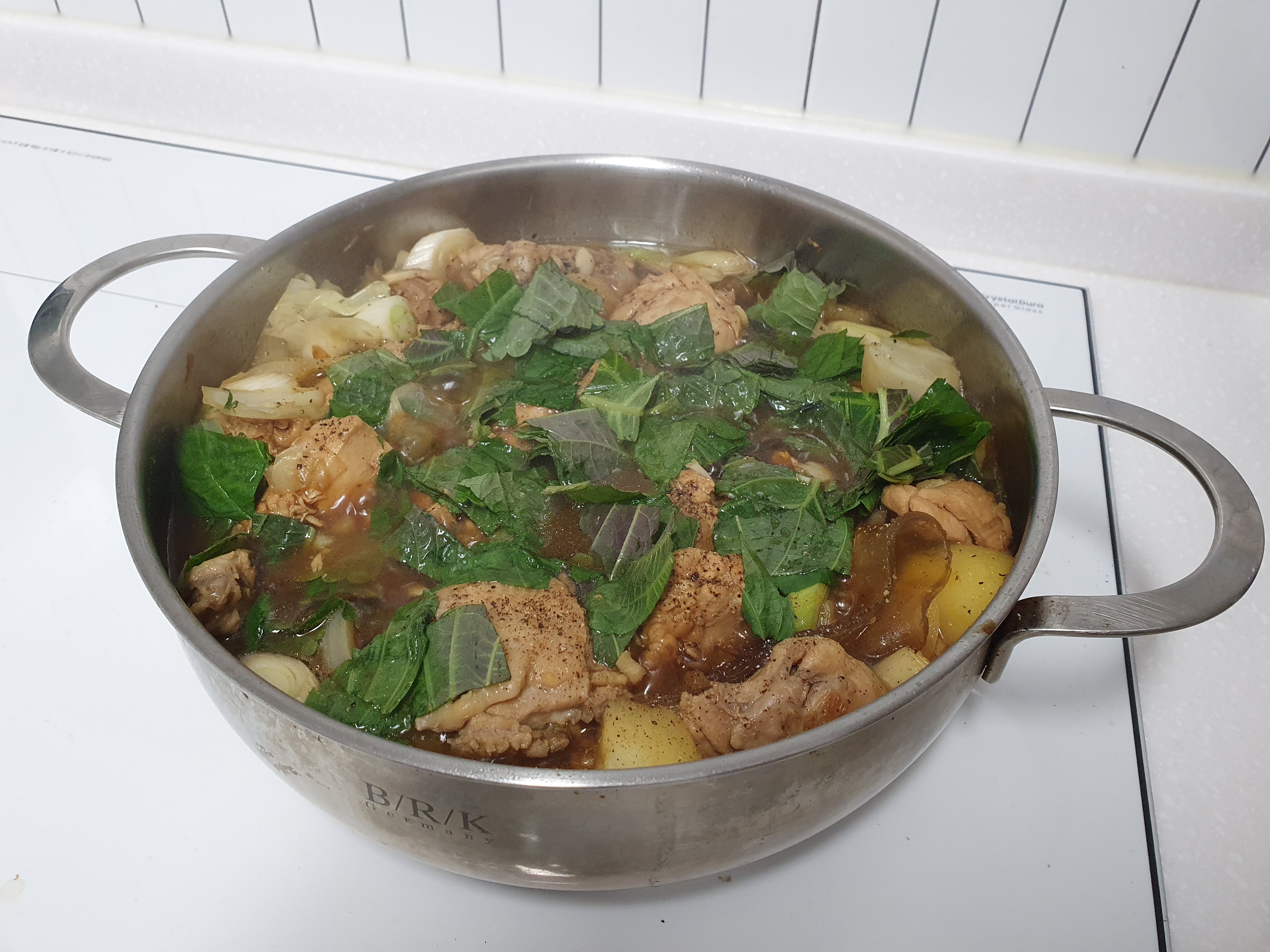 5. 닭이 어느정도 익으면 준비한 중국당면, 양파, 양배추, 대파, 페페론치노를 넣고 한소끔 끓여주세요.